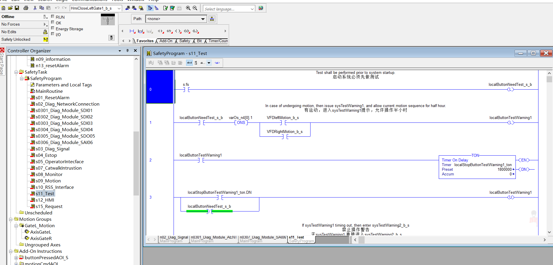 ranbin大師啊,這么偏門的PLC都用過,確實是一大堆的安全門,安全插件,每次開機要把所有的急停開關測試一遍,才能在正常開機,太煩了