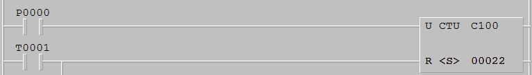 p00計數輸入   t001復位   c100計數22個輸出