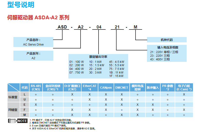 驅動器支援CANopen總線,脈沖控制通常選ASDA21021L 或ASDA21021U