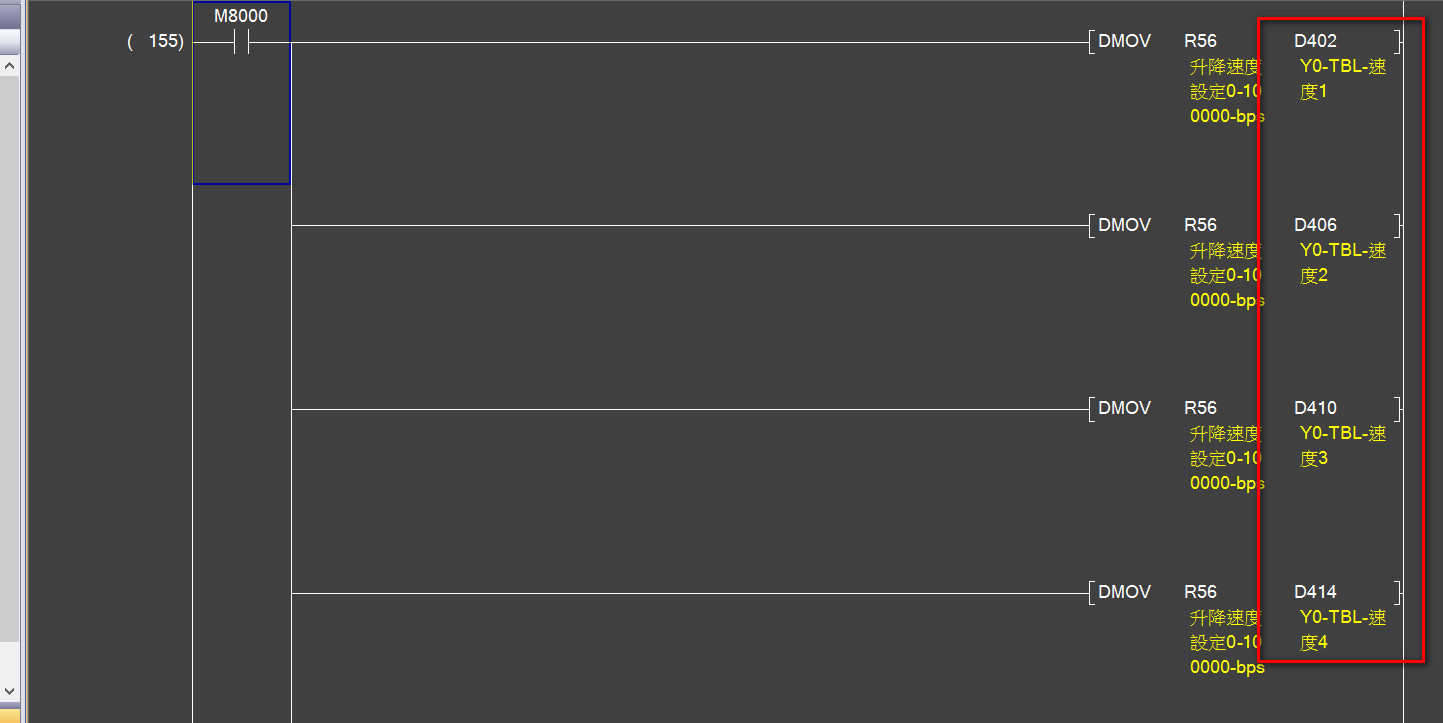 還是說表格定位指令設定的時候你用的D寄存器。