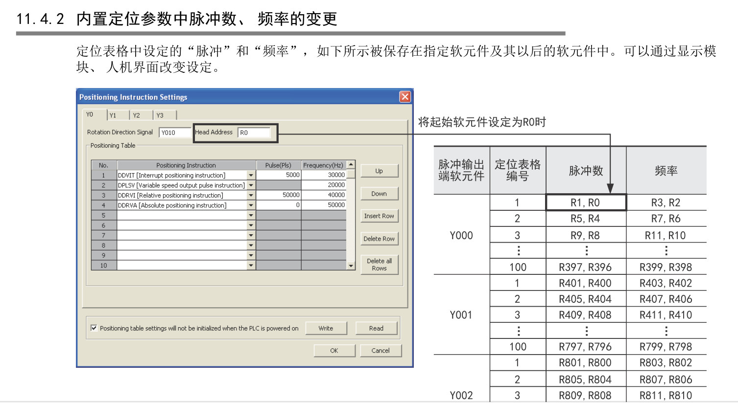 1:表格定位指令中的脈沖數,可以修改寄存器來改變數值