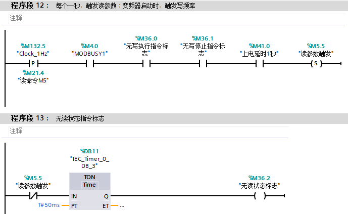 手頭有一項目,S7-1200通過Modbus對臺達變頻器進行讀寫操作,寫操作為外部輸入信號觸發,現在通過兩種方法可以實現,但是效果非常不理想,第一種為中斷響應,既有外部觸發信號后,在當前通訊狀態為OFF情況下,進行寫操作,同時以1S為周期,進行讀操作;第二種方法通過周期觸發讀寫信號,如5HZ的頻率對變頻器進行讀寫,但是實際測試,這種方法響應特別慢,小弟實在智窮,請大神指教。