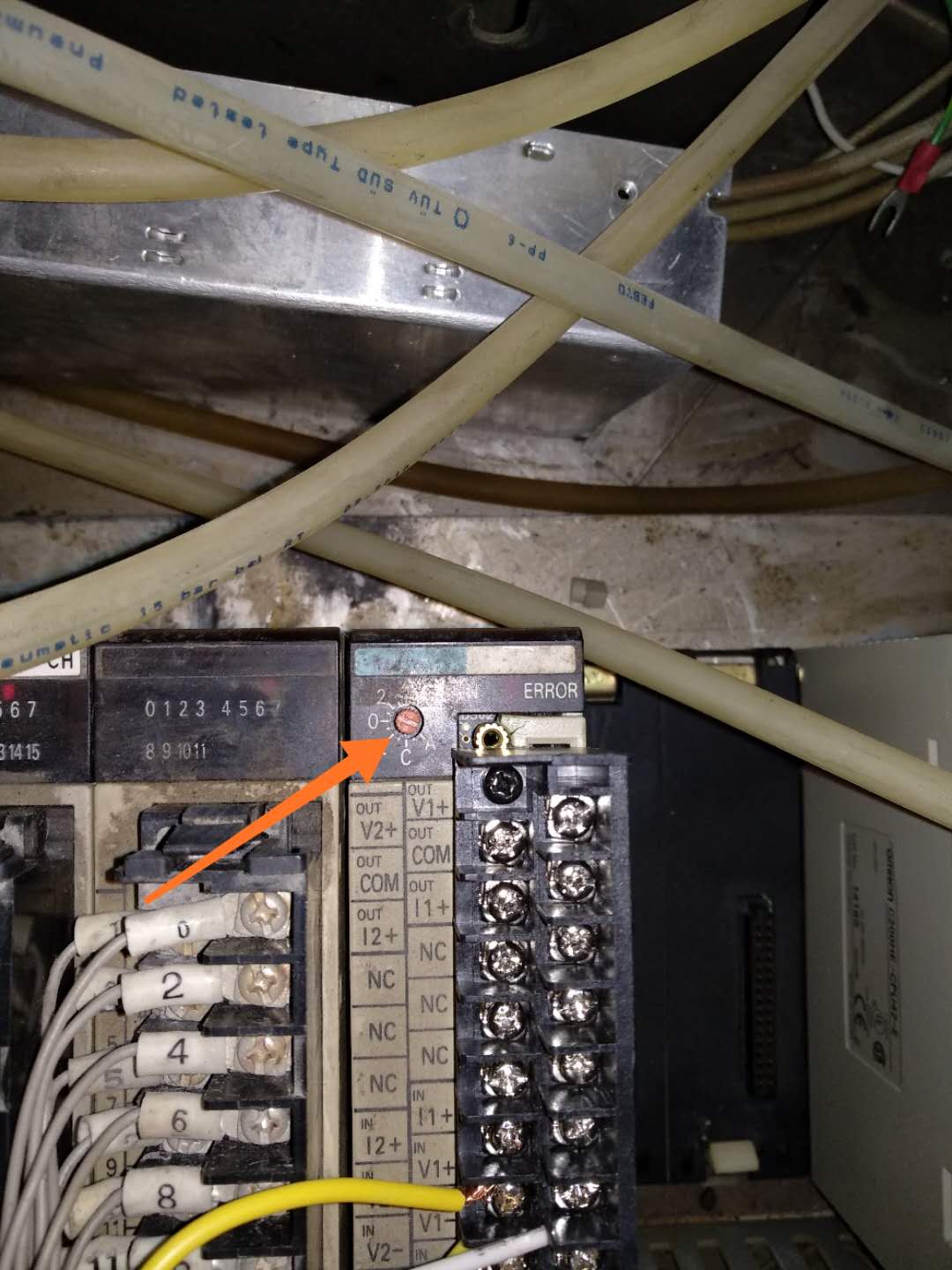 故障現(xiàn)象:開機(jī)模擬量模塊報(bào)錯(cuò),ERR紅斷亮,但RUN燈也亮,PLC接收不到模擬輸入信號(hào)。將模擬量模塊旋鈕轉(zhuǎn)到0或者3,ERR燈熄燈,RUN燈正常,