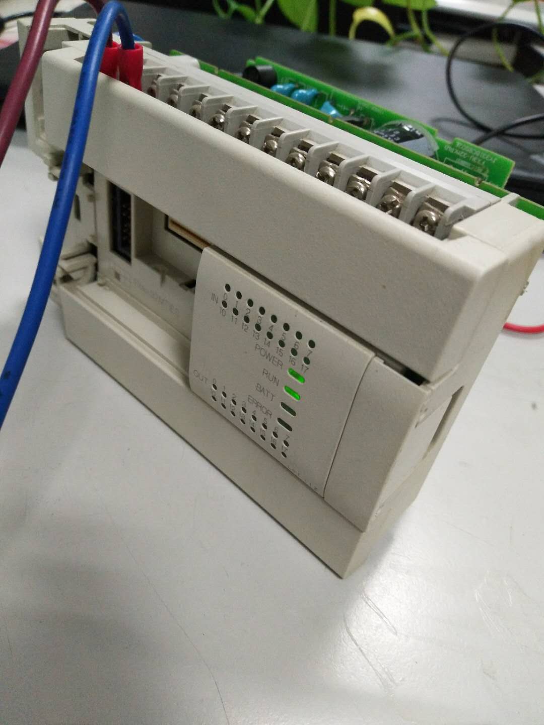 今天在修一臺PLC設備時發現,正常通電時,PLC電源指示燈(POWER/RUN)不亮,后面排查幾次后發現,正常通電時PLC不亮(如圖1),然后在通電狀態下直接拔掉PLC中的一塊線路板(不知道這個板叫什么)如圖2,最后同樣在通電狀態下,將板子插回去PLC通電正常。但是如果把電源再次拔掉重插,PLC又是不通電的,需要拔掉板子重插才行,各位大神知道是什么原因嗎?