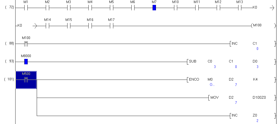 看看是不是你要的,當D0中數字變化一次,m500 on一個周期,D10也會增加1,D10增加是作為測試用的