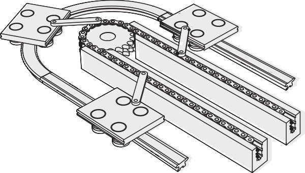 滑塊與鏈條可以直接連接,也可以通過傳動桿連接。相對同步帶而言,鏈條可承受較大荷載。