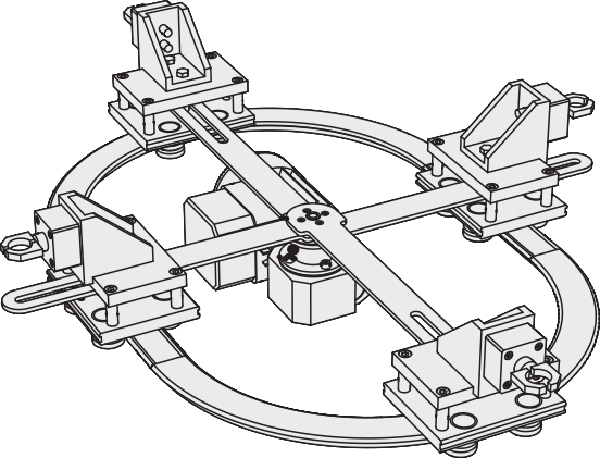 電機置于系統中央,十字臂上帶有長槽,以適應滑塊與電機驅動軸之間的距離變化。這種驅動形式的傳動機構簡單,不同滑塊之間距離不易變動, 但電機的啟動力大。