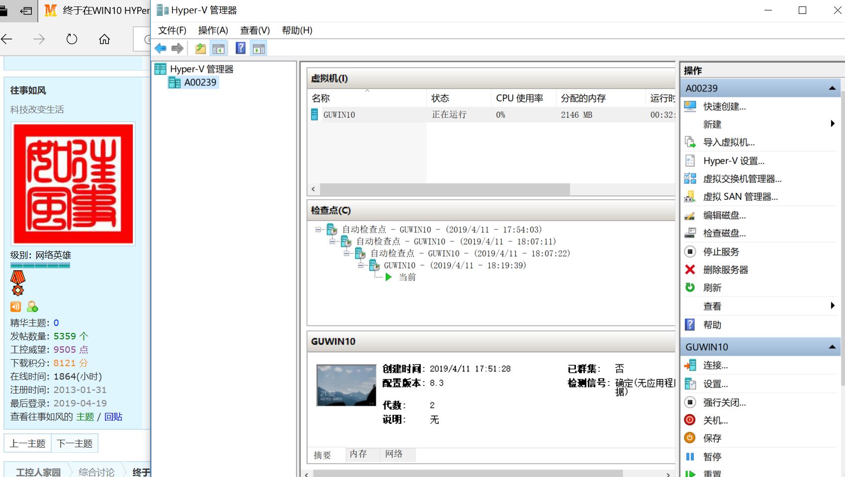 WIN10自帶的Hyper虛擬機真的不好用,上周發現無法進入虛擬操作系統,估計是物理機系統自動更新導致(工控人對系統更新還是要慎重),從多個還原檢查點進入都失敗,實在沒法只有刪了虛擬機,重新安裝。辛虧虛擬系統我只用博途V15,程序重新安裝費點時間。