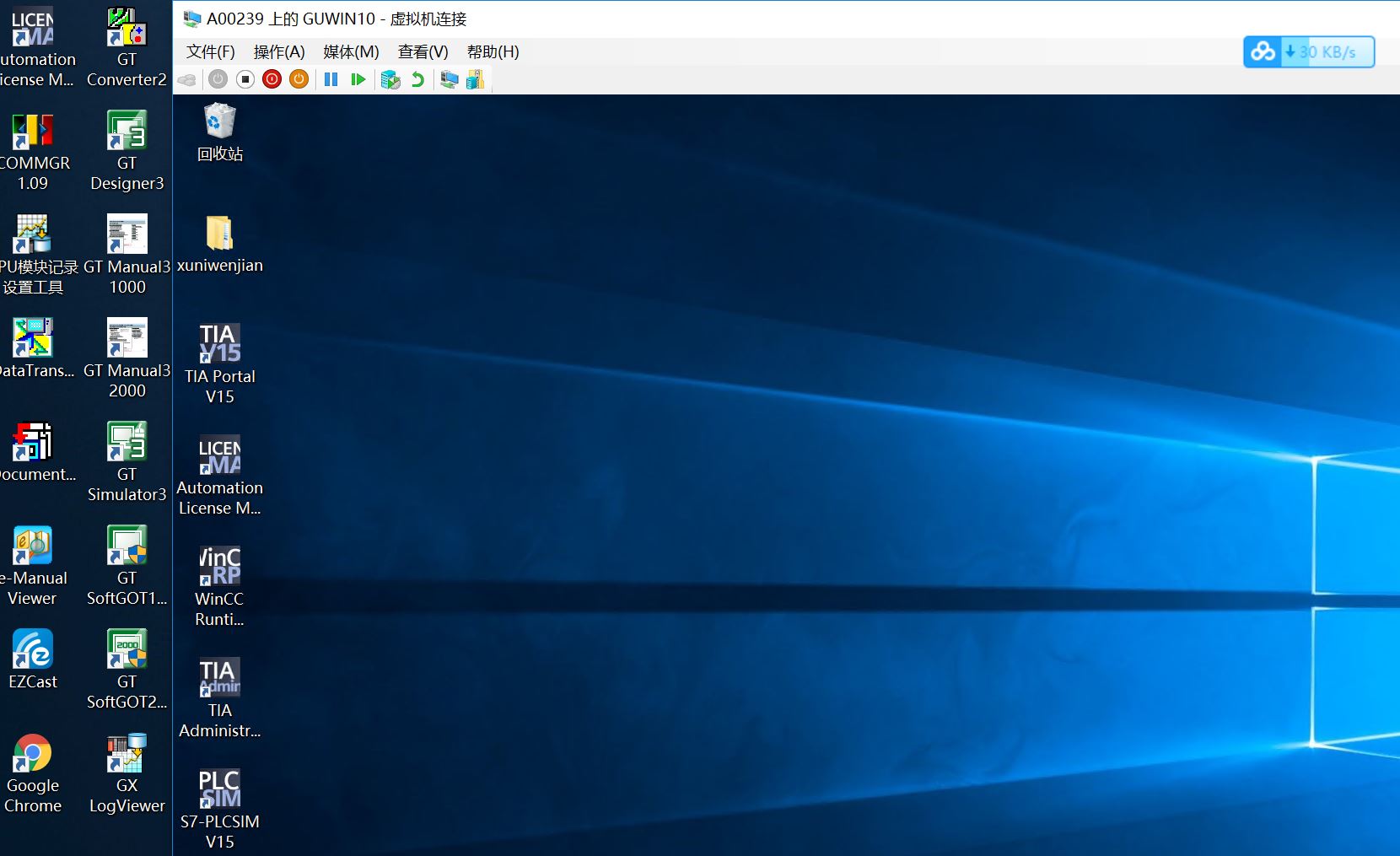 故事的開始是公司配的新電腦我裝好了V15。但裝好后發現無法打開對方發我來的V14壓縮文件中的人機程序,并出現提示版本不對。查了原因是對方使用的西門子人機某款型號V15竟然無(why???),沒法.只有卸載V15安裝V14SP1,(期間折騰半天.,差一點就準備系統重裝。省略.......).安裝好V14SP1能夠順利打開PLC和人機程序。過了幾天另外廠家設備到貨,一查發現竟然都是用V15版本,暈死。西門子V14、V15 STEP 7 XXX  Professional軟件是可以共存在一個系統,但WINCC Professional不可以。沒法決定安裝虛擬機。因為本人用的是WIN10系統,找度娘指導發現竟然自帶虛擬機Hyper-v,折騰半天開啟了虛擬機。到網上下載WIN10安裝包(.iso),下了2個都無法引導成功。找到公司IT要了一個安裝包,引導成功安裝完畢。跳出WIN10熟悉的操作界面。試著準備將廠家提供的V15軟件安裝在虛擬WIN10系統里。咦?為何無法復制粘貼,也并無法拖拽導入?趕緊繼續百度,發現win10自帶的虛擬機不支持復制。只能用文件夾共享模式,折騰半天........成功安裝V15。解壓程序文件,可以操作,至此OK。