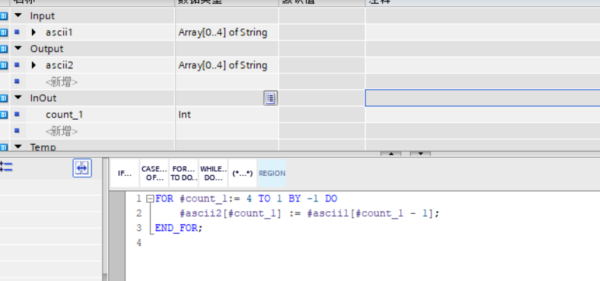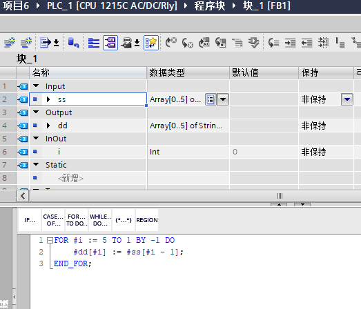我用西門子博圖中的SCL 編程語言做for循環(huán),發(fā)現(xiàn)要復(fù)制的數(shù)組沒反應(yīng)不知道什么原因
