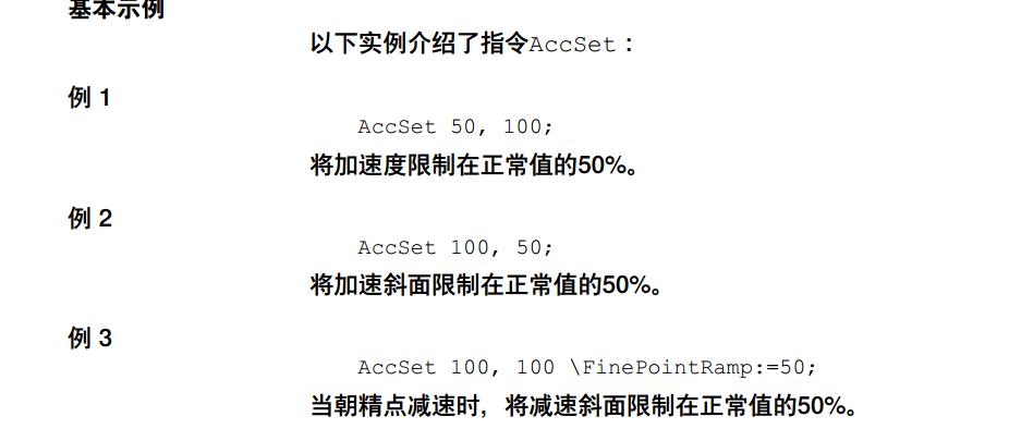 AccSet這個指令,就是一個速 度限制,你這三個例子不是有說明了嗎?50=50%;在不同的位置限制不同的東西