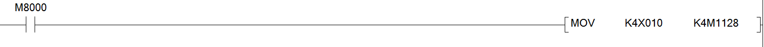 再例如:MOV D0 K4M100;這條指令就是將D0的值傳給以M100開頭共16個組成的存儲器;