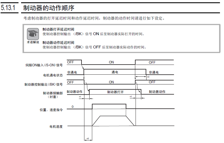 當你S-ON後馬達上電,此時剎車才放開