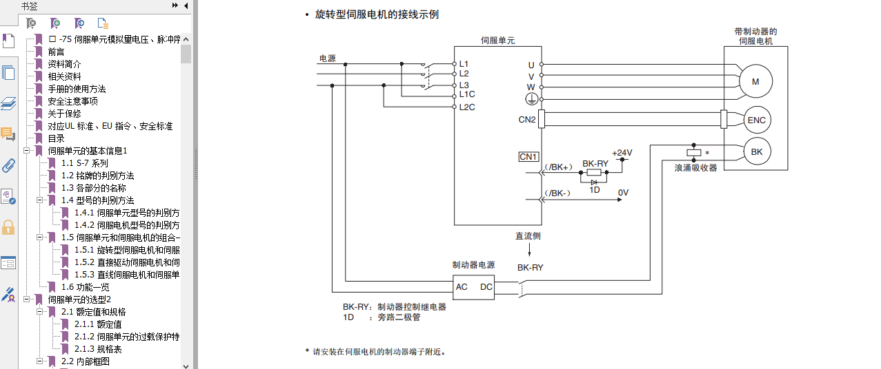 如題,求大神分享一下一般帶剎車的伺服,剎車這個信號的怎么設計的呢?我現在用的是安川伺服,伺服型號SGD7S-5R5A00A202,伺服電機型號SGM7J-08AFC6E。如圖,從CN1出來的兩根BK+和BK-應該接繼電器呢?還有電機上的兩根驅動線B+和B-怎么接線呢?