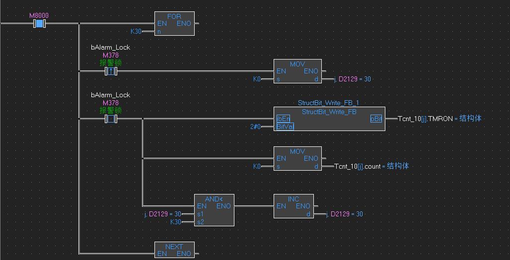 梯形圖更難受啊,結構體位變量居然不能SET、RST,FOR語句必須母線運行,還會出現莫名的無法查找的奇怪問題。