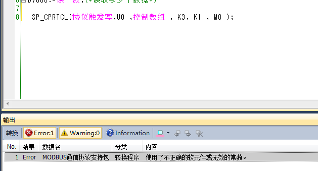 ST寫(xiě)通信協(xié)議支持功能按照手冊(cè)SP_CPLTCL指令介紹ST里面 U0就是直接寫(xiě)U0但是寫(xiě)進(jìn)去報(bào)錯(cuò)編譯不了,報(bào)錯(cuò)如圖但是把U0改成D0就行了但是D0咋賦值成U0呢