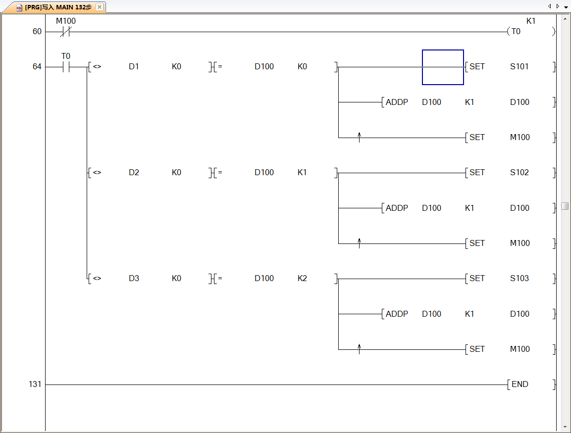 引用引用第15樓gk1234于2020-04-27 16:22發表的 :利用雙循環和間接尋址,fx3g為例,1,設定使用d501-d521寄存器,2,雙循環輸出,先設定z1和z2為1,輸出計數器c0清零,通過外循環索引寄存器z1(1-20),輸出計數設定值為z1,再通過內循環索引寄存器z2(1-20),當d500z2為1時輸出,計數器c0+1,當計數值和輸出計數設定值z1相等時,設定z2為1,完成1個小周期,接著計數器c0清零,z1+1,執行下一個小周期,3,等到內循環到d521時,設定z1和z2為1,計數器c0清零,完成個大周期。