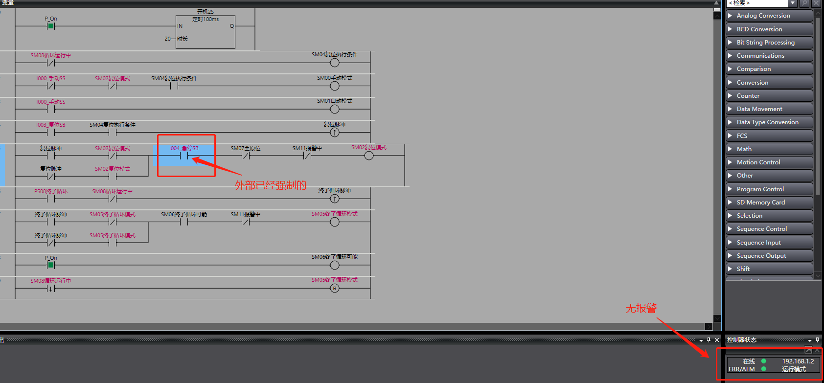 程序在離線模擬的情況下都可以,傳進PLC中在線監視的時候plc就不運行了,而且也是運行模式,PLC也沒報警,程序進去就是不能用,有沒有大佬知道這個問題的?好急,歐姆龍客服也問了,也不知道什么原因。