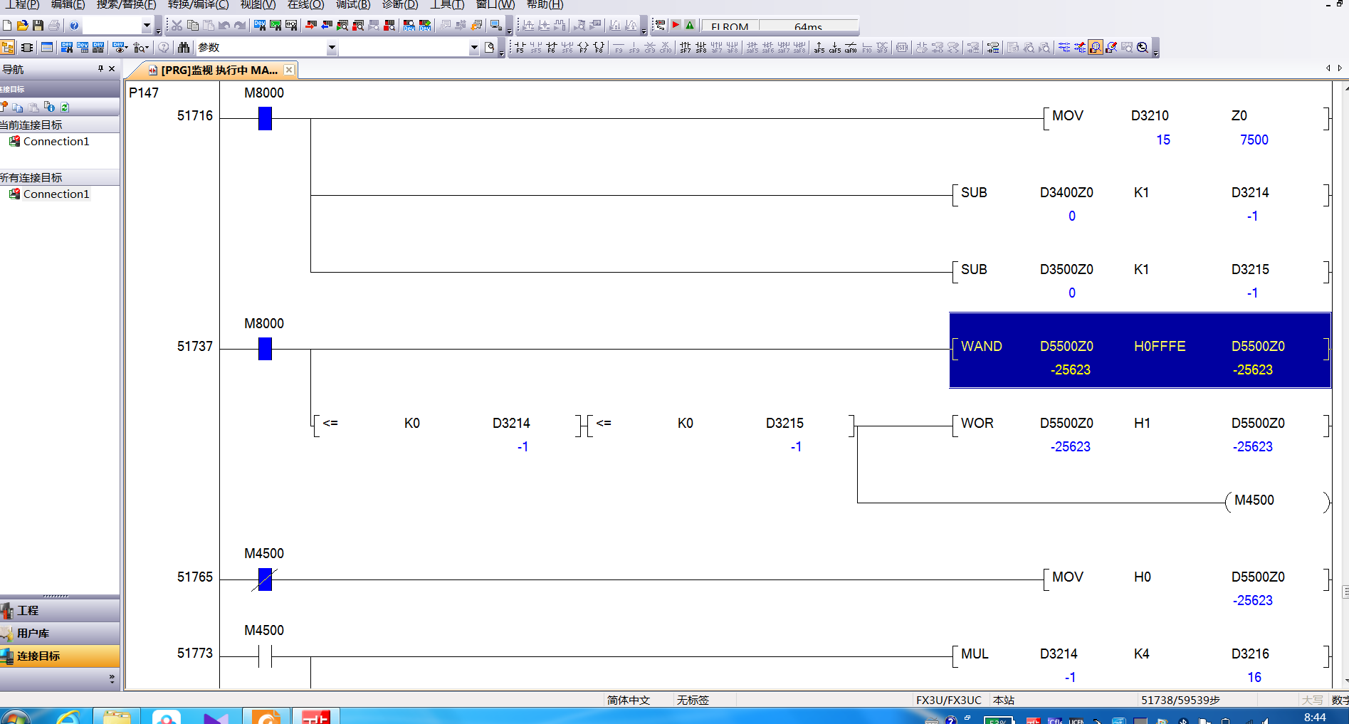 程序內Z0 肯定不止一個CALL P調用了,所以Z0不會在這個CALL P是7500,7500的值可能是你程序內掃描周期內最后的一個CALL P的Z0換算的值。所以,在這個P147內,是D3210傳送值給Z0