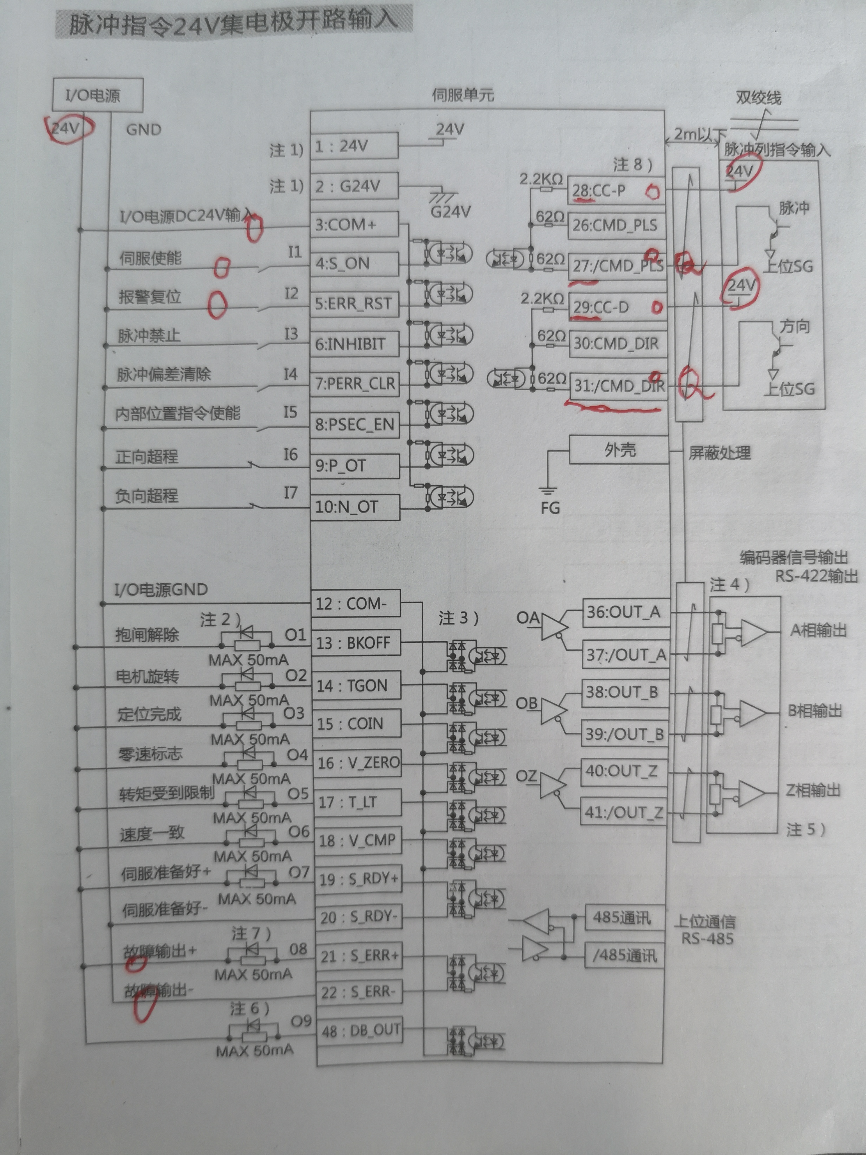 0V接的24V,伺服報警信號也有。現(xiàn)在就是不轉,脈沖有輸出Q,請教一下什么原因,