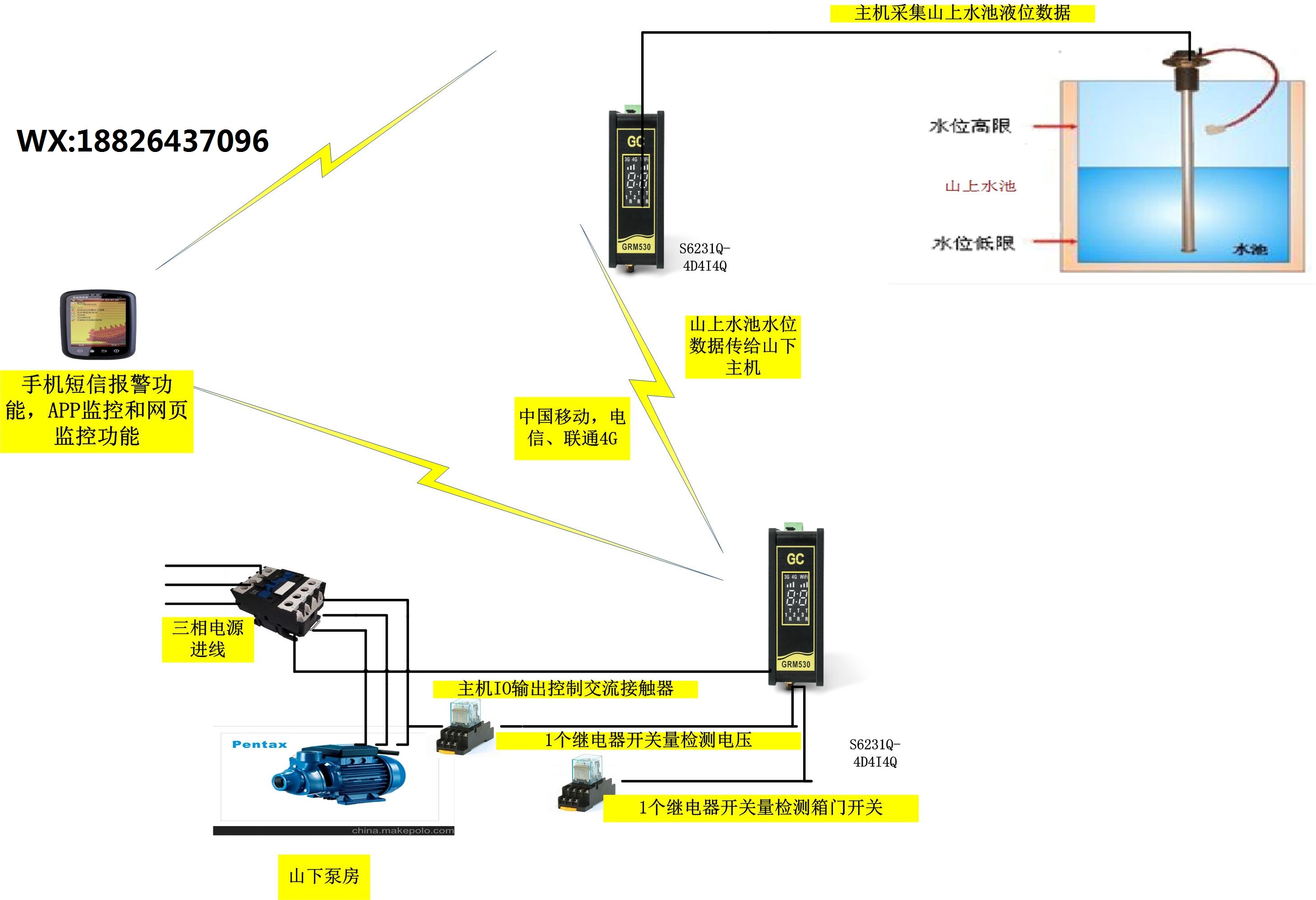 小項目分享一下:現場水位與水泵相隔5公里,利用兩個GRM230智能工業控制器,實現水位連動5公里外的水泵自動啟停。手機APP監控無人值守,省時省力。