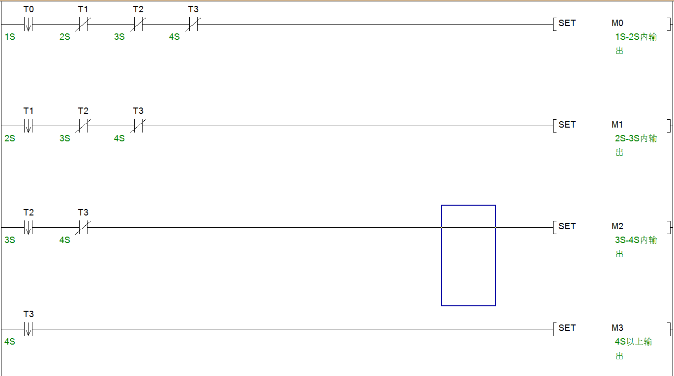 可以的,要取下降沿,歐姆龍不熟悉,以三菱舉例,大概如下,實際需要做些互鎖,看你實際控制了。比如已經觸發M0-M3執行輸出時,T0-T3應該禁止輸出,直到M0-M3復位為止