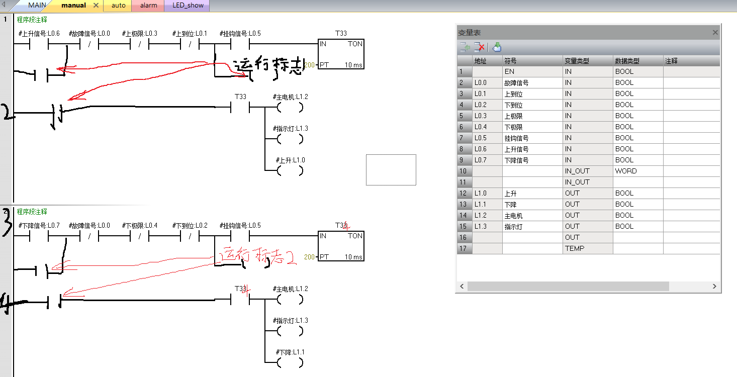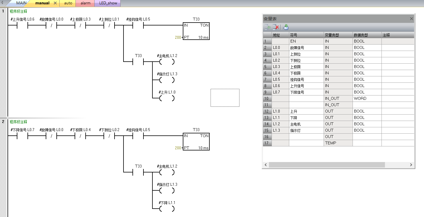 時(shí)間繼電器要用不同的,兩個(gè)程序段不能相同。另外加上運(yùn)行標(biāo)志,用運(yùn)行標(biāo)志和時(shí)間繼電器的常開觸點(diǎn)驅(qū)動輸出。