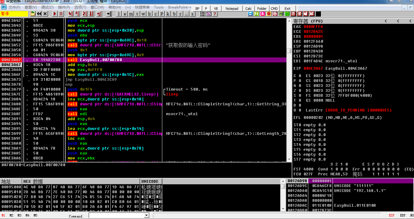 OD反匯編跳過密碼錯誤程序段,觸摸屏硬件無法停止’