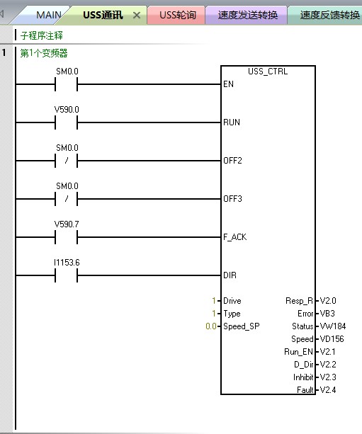 1.兩個子程序都在主程序中調用時,USS_RPM_R沒有任何錯誤,但是USS_CTRL平均15秒就會報錯,錯誤代碼2。2這個代碼不知什么原因引起。