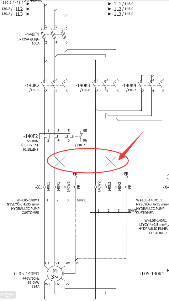 如果控制柜距離電動(dòng)機(jī)比較遠(yuǎn)的話(huà),為電動(dòng)機(jī)供電的六根導(dǎo)線(xiàn)線(xiàn)路就會(huì)比較長(zhǎng),容易對(duì)其他對(duì)干擾比較敏感的電路或者元器件有干擾,因此就采用了對(duì)為電機(jī)供電的導(dǎo)線(xiàn)線(xiàn)路進(jìn)行交叉布置,以減少電動(dòng)機(jī)啟動(dòng)或者運(yùn)行過(guò)程產(chǎn)生的干擾信號(hào)對(duì)敏感電路或者元器件的干擾,以保證設(shè)備的安全正常運(yùn)行。