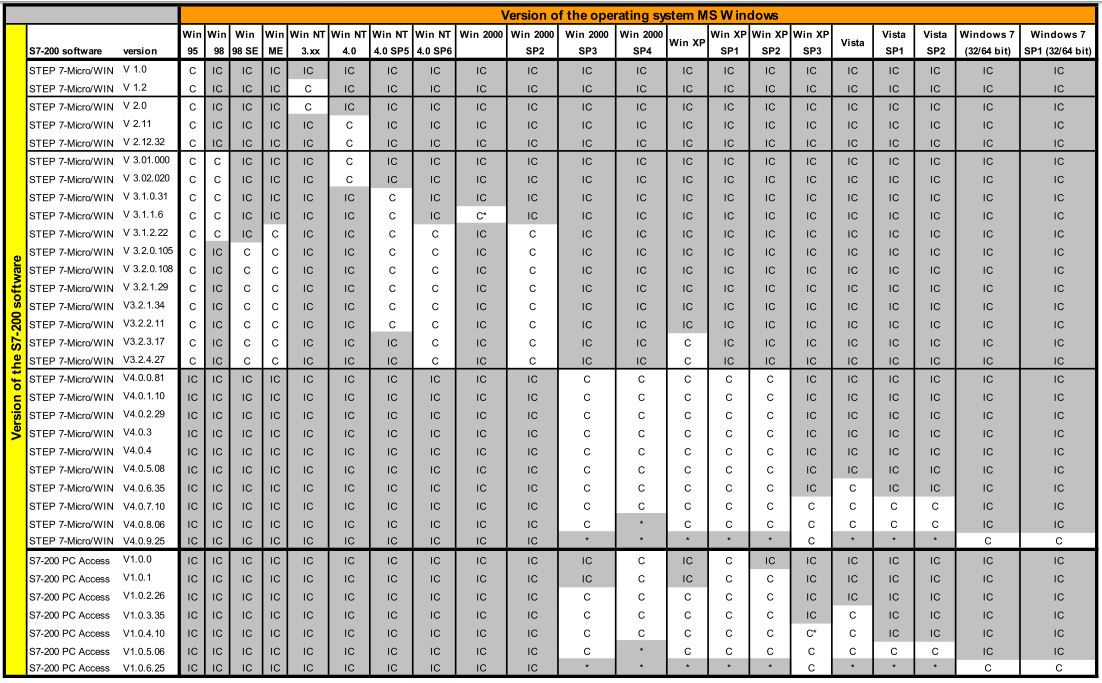 表1. Micro/WIN與Windows版本兼容表