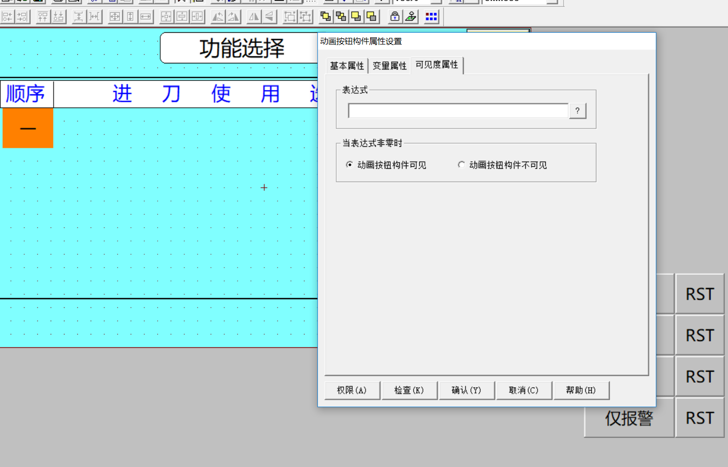 功能上有的時候不讓 用戶點擊這個按鈕,如威綸通里面的  當(dāng)不讓點擊的時候按鈕灰階顯示,  如果實現(xiàn)不了灰階也沒關(guān)系,只要不讓點擊就行(點擊了觸摸屏不動作)   謝謝  不能隱藏了