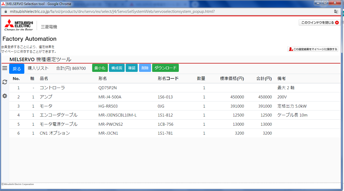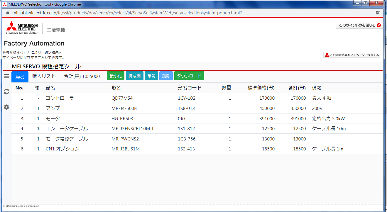 這是三菱日本官網(wǎng)的伺服馬達(dá)選定軟體配出來的