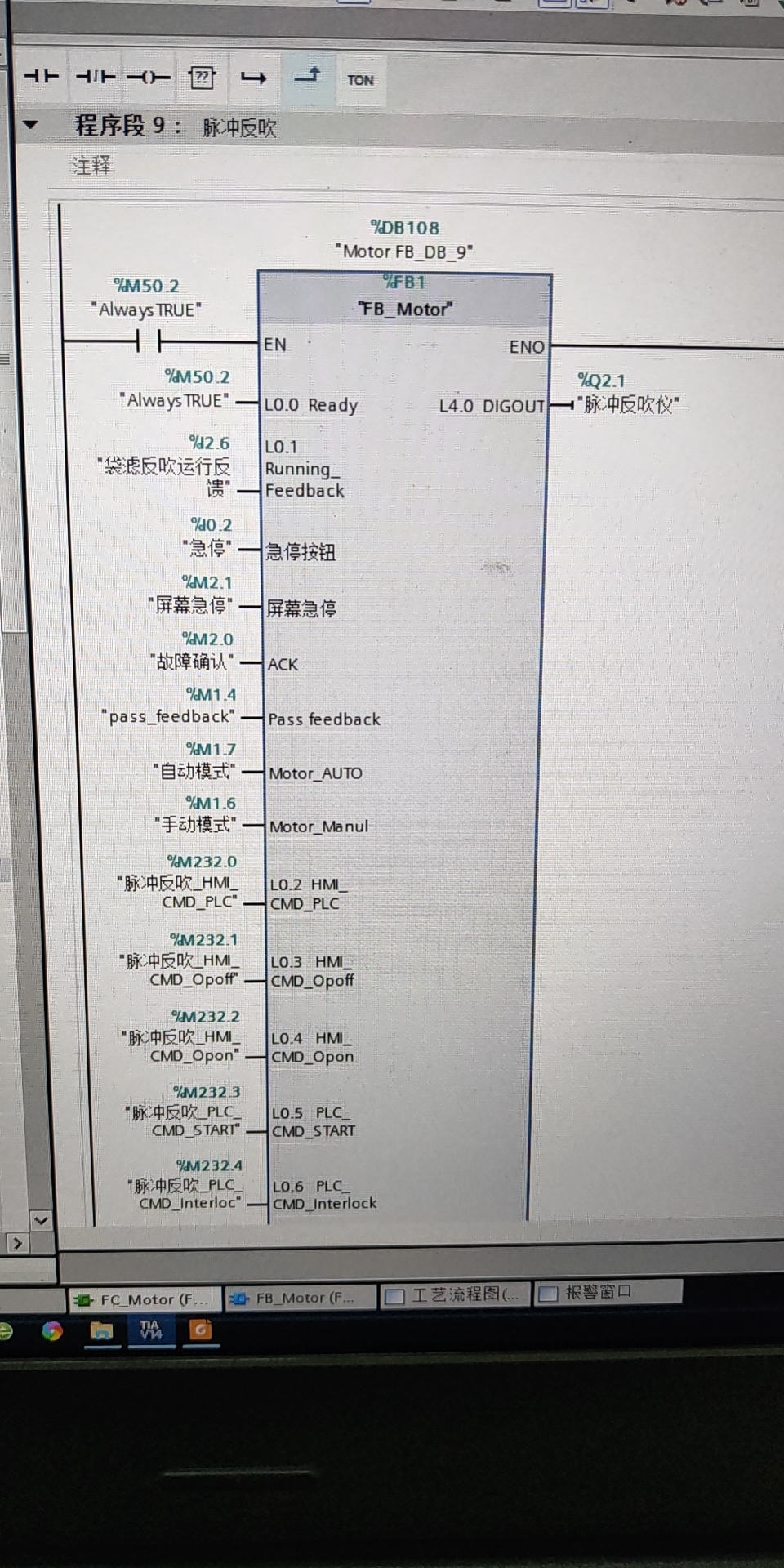 你要看FB塊(FB-Motor)里面的實際邏輯是什么,才能找到問題。