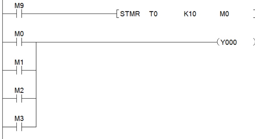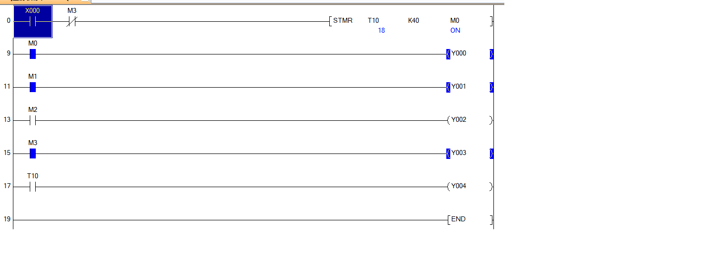在M1為1的時候M3也為1,實際上M1和M3的輸出結(jié)果是一樣的,所以M1高電平的時候M3也是高電平,那么這個STMR的輸入結(jié)果本來就是0 這個時候X0關(guān)閉對結(jié)果沒影響啊,怎么會X0為0,M1立刻為0呢 10秒還沒到啊
