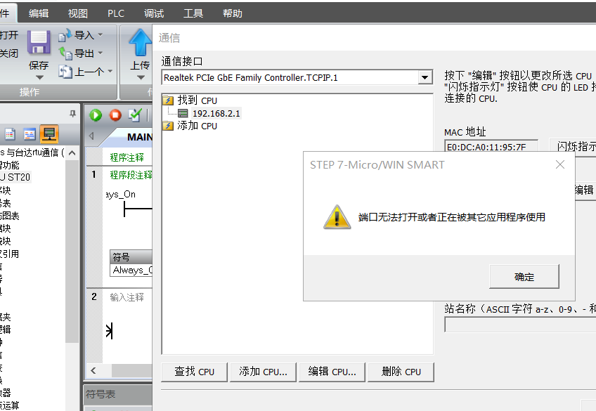 ping可以連接上,PLC指示燈也可以閃爍就是連不上