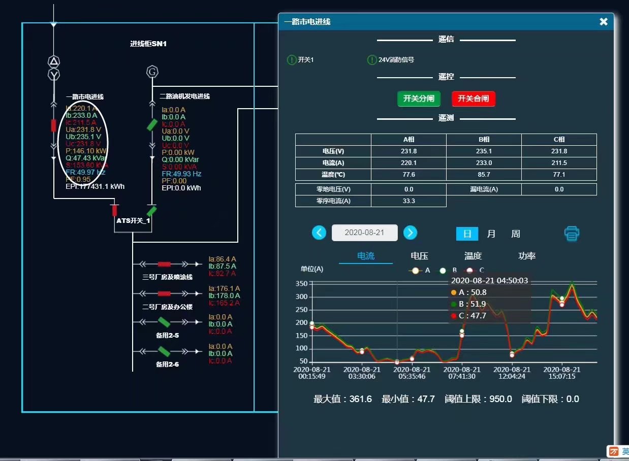 電力項目使用遠程模塊GRM230自帶io,模擬量開關量,rs485采集儀表,使用圖形化云組態APP軟件WEBGUI實現遠程監控