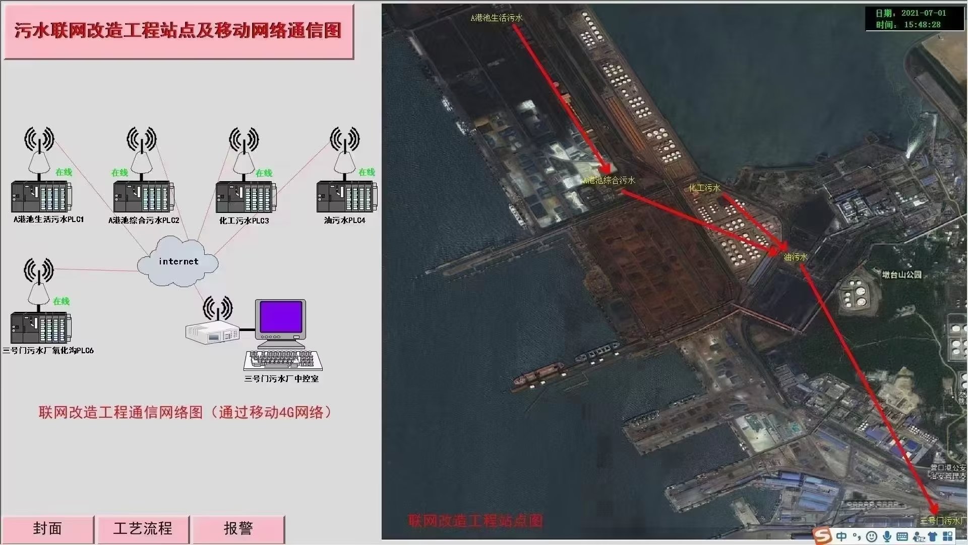 北方某港口通過改造4座泵站及1座污水處理廠,PLC采用S7-200SMART,5套智能4G無線終端接入互聯網,可以通過控制室HMI監控現場設備的運行情況