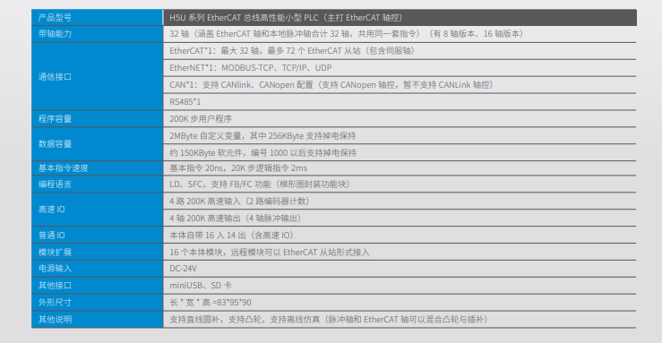 H5U 主打  *ETHRCAT      CANOPEN CANLINK總線