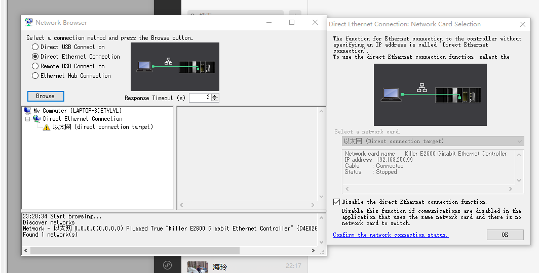 如圖,這個plc用別的電腦可以連接的,用我自己的電腦怎么都連接不上。軟件卸載重新安裝也不行,網卡驅動也更新過,各種各樣的試了,一個星期都沒成功