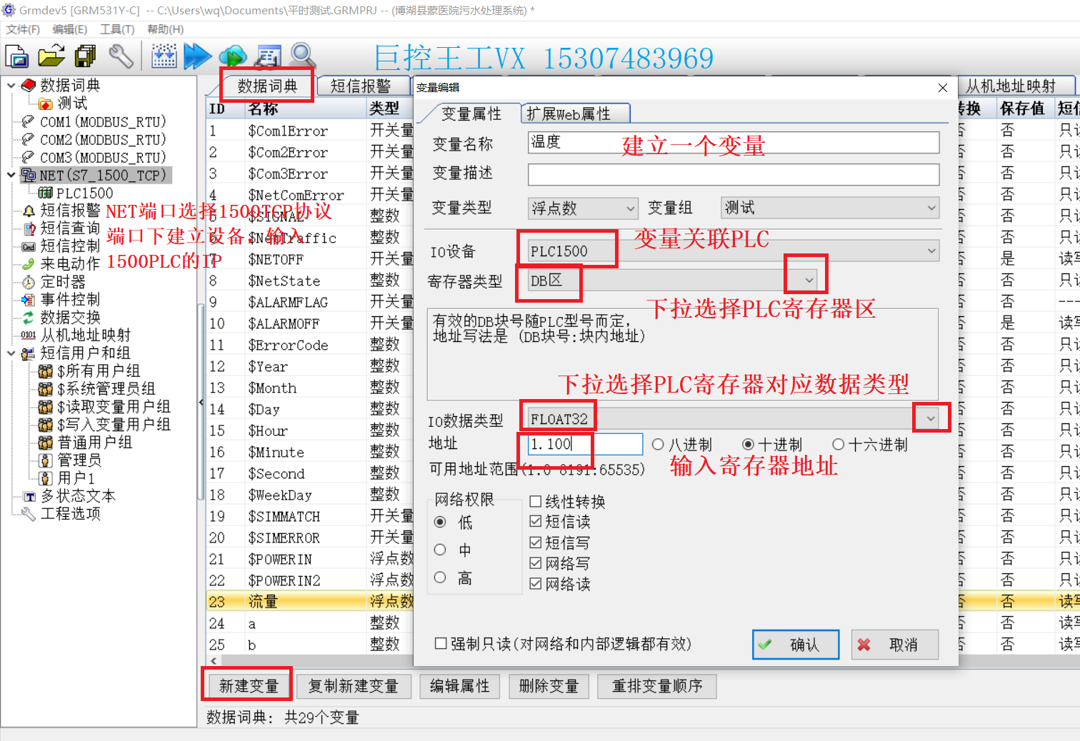 硬件內部用變量映射PLC寄存器的操作,就和觸摸屏組態一樣。巨控模塊自帶各種PLC協議,確定PLC