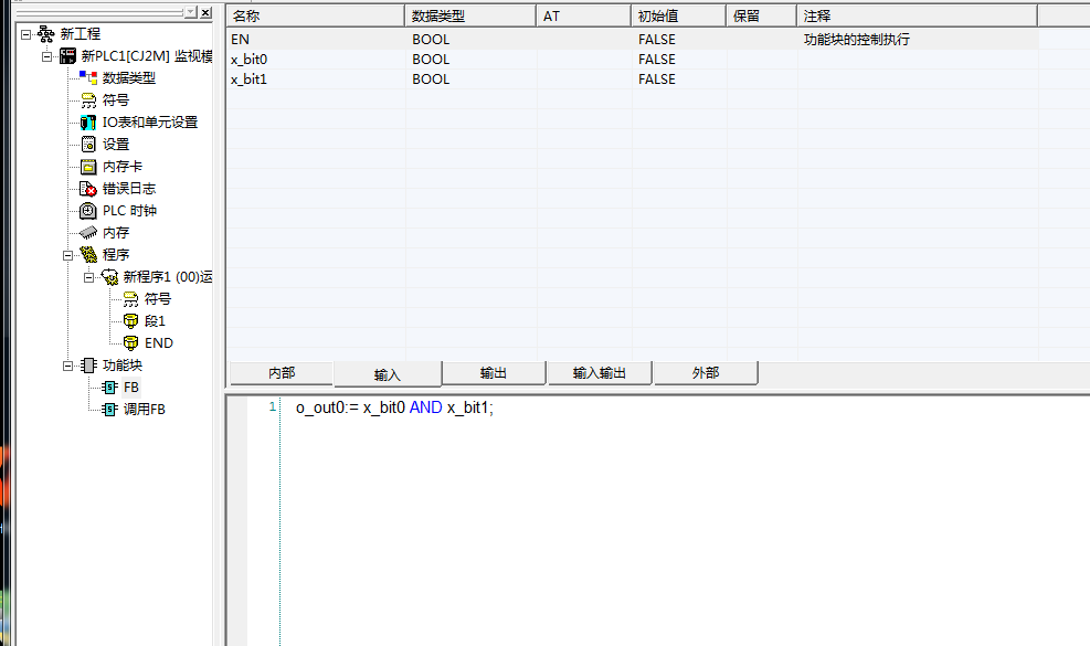 CP,NJ差不多吧,在變量表里建立FB的變量,然后在st里,FB的變量名(輸入1:=參數1,輸入2:=參數2,輸出1=>輸出參數1,輸出2=>輸出參數2);官方FB有ST方式使用說明