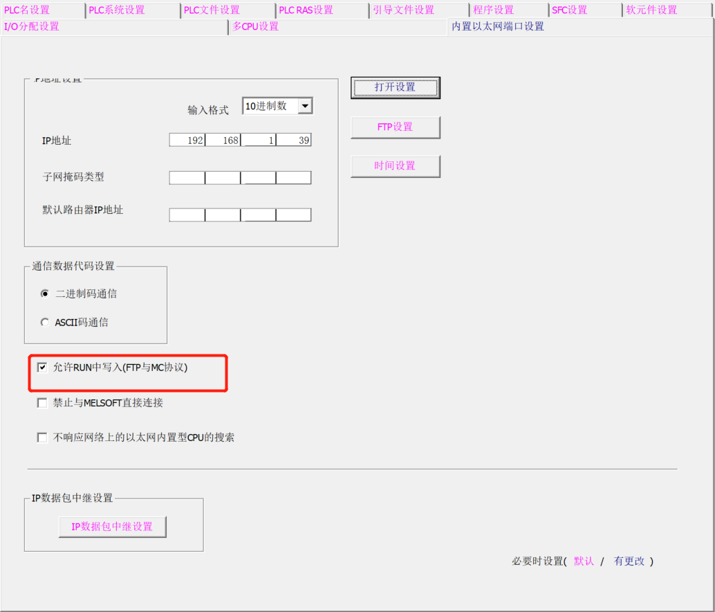 通訊設置沒啥問題,只需要另外把“允許RUN中寫入”勾選一下就行了