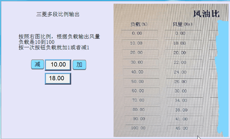 負載是10到100,按一次按鈕負載就加1或者減1,輸出是模擬量10V控制兩臺變頻器,負載10到20之間兩臺變頻器相差12hz,負載20到30之間兩臺變頻器相差11hz,負載30到40之間兩臺變頻器相差8hz,以此類推后面相差7hz,6hz,7hz,10hz,11hz,12hz.請問這種輸出該用什么指令編寫,有什么好的想法和思路,cpu是西門子200smart