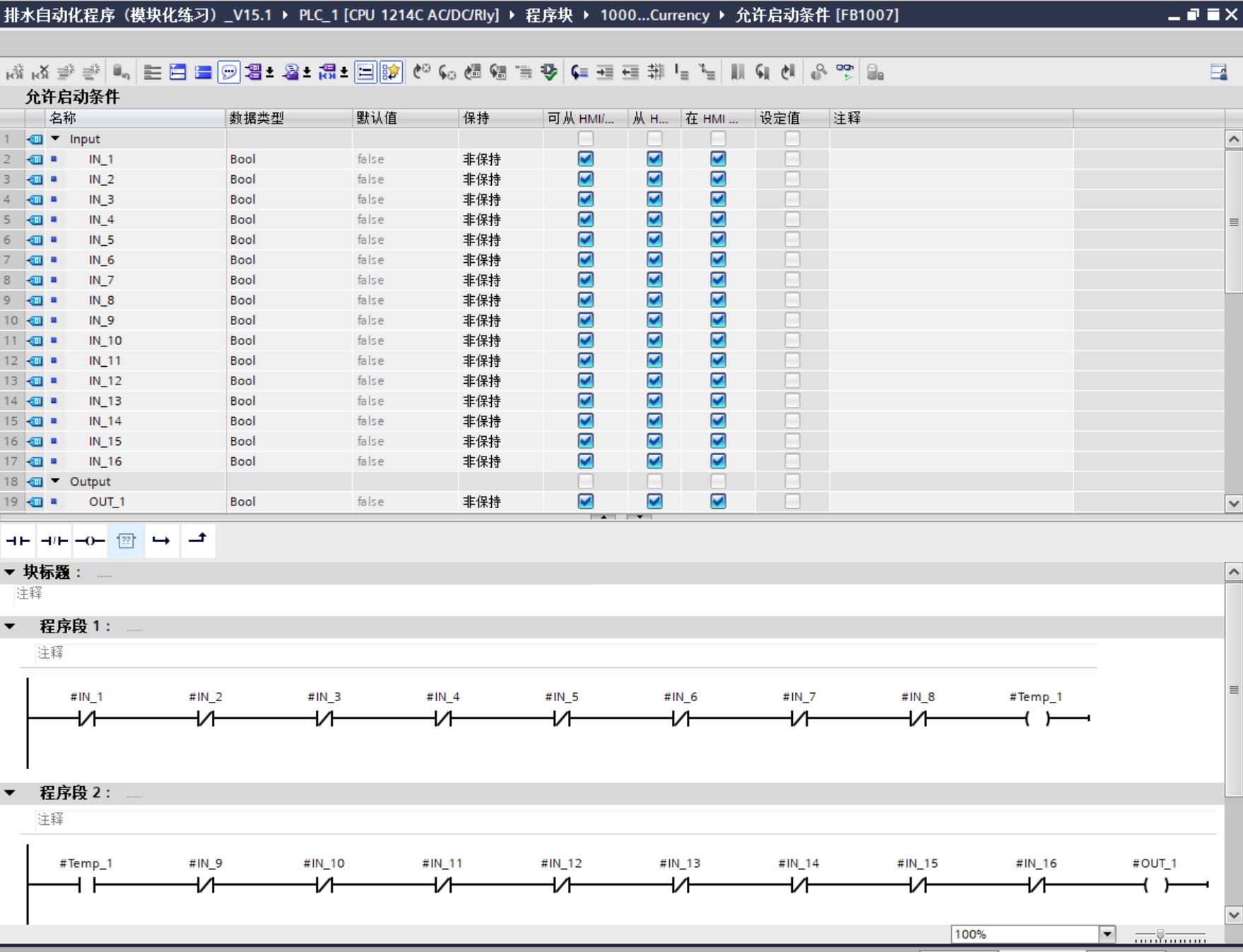 我這里有一個應用,設備允許運行條件,有需要滿足多條件完成,才可以發出允許運行信號。因為工藝要求條件會有所變化,所以建了一個FB,16路輸入,能夠實現任意引腳輸入條件,完成。但是有一個問題,輸入的條件需要是需要取反,請教一下,怎么才能實現不需要取反,而實現這個功能。