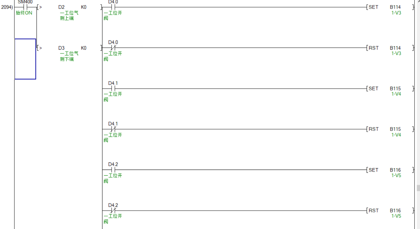 例1: 1號氣缸打開,2號氣缸打開,2號氣缸關閉,3號氣缸打開,4、5號氣缸同時開,4、5號氣缸同時關閉,3號氣缸關閉,6、7、8號氣缸同時打開,6、7、8號同時關閉,9號氣缸打開,9號氣缸關閉,1號氣缸關閉,所有氣缸均帶位置控制,其中7、8、9號是位置+打開的時間控制。