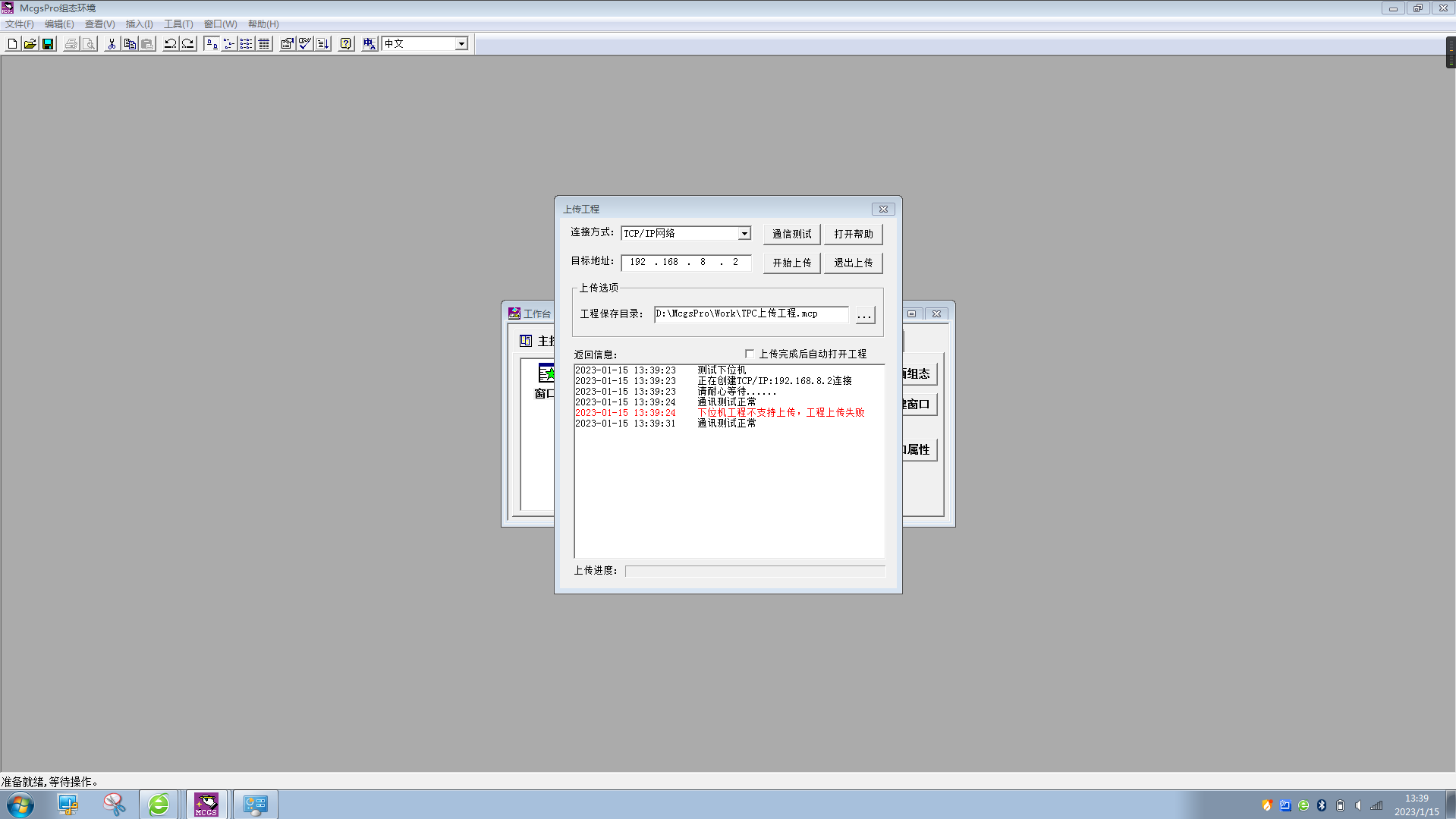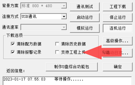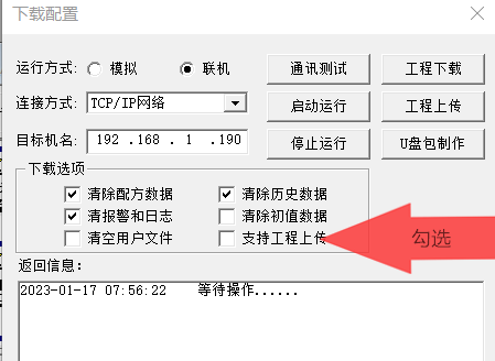 如圖   不管是 MCE 工程,  還是  MCP 工程 ,在工程下載前勾選   “支持工程上傳” 才可以上載