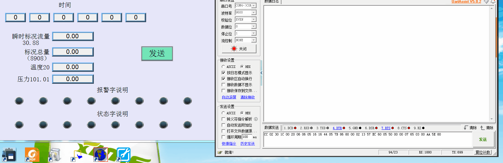 威綸觸摸屏(cMT-G01)與天信流量計(天然氣)通過以太網(TCP轉串口)讀出累積數,實時流量等