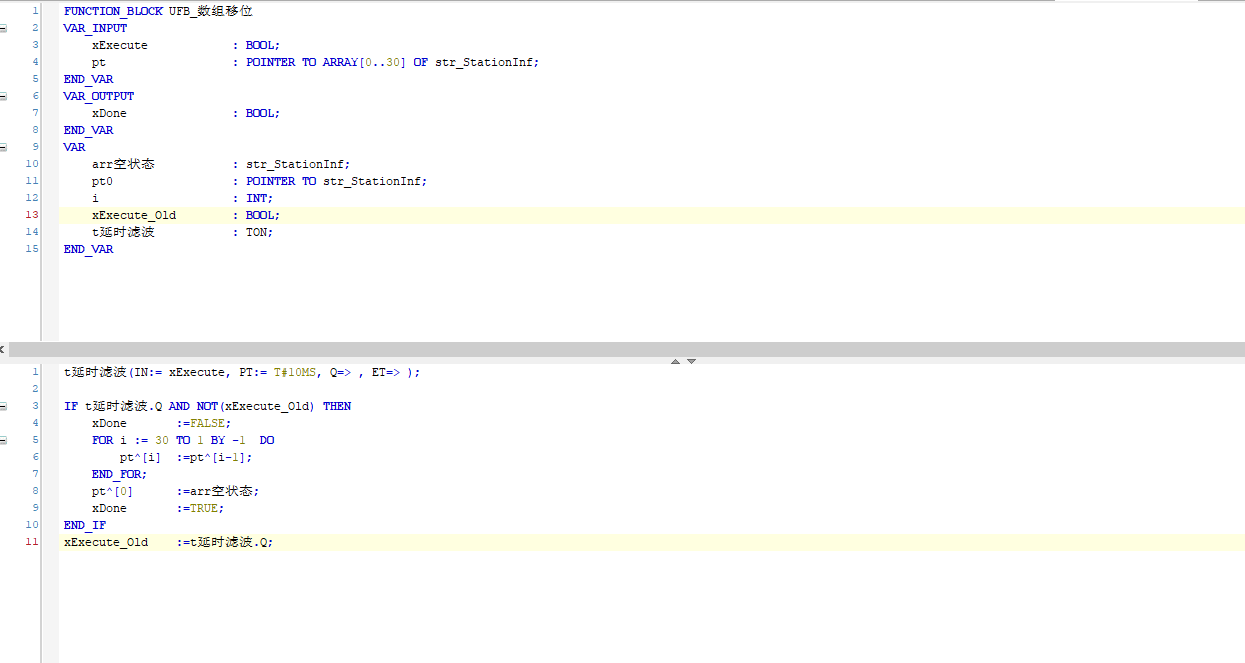 附件為施耐德FOR循環指針數組移位功能塊,用三菱ST語言應該怎么寫,請指教。