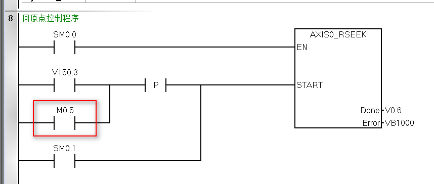 也就是用最后一次定位網絡7的定位完成V40.0,代替網絡8的M0.5, 這樣網絡7定位完成后, 才執行網絡8回原.